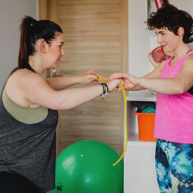 Uczymy się prawidłowych ćwiczeń korygujących postawę, rozejście mięśnia prostego brzucha oraz tłumaczę, jak powinny wyglądać czynności dnia codziennego, aby pacjentka nie pogłębiała dysfunkcji.